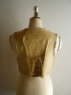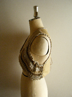 綿、麻、シルバーラメ糸を使用。背中部分のレザーは牛革。